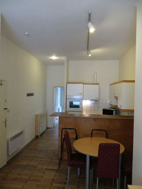 In good condition; kitchen with a fridge, hot plates, oven, microwave, and dish washer. Bathroom with a bath tub. Tile and wooden floors, nice furniture. Washing machine and tumble dryer in the basement of the building.